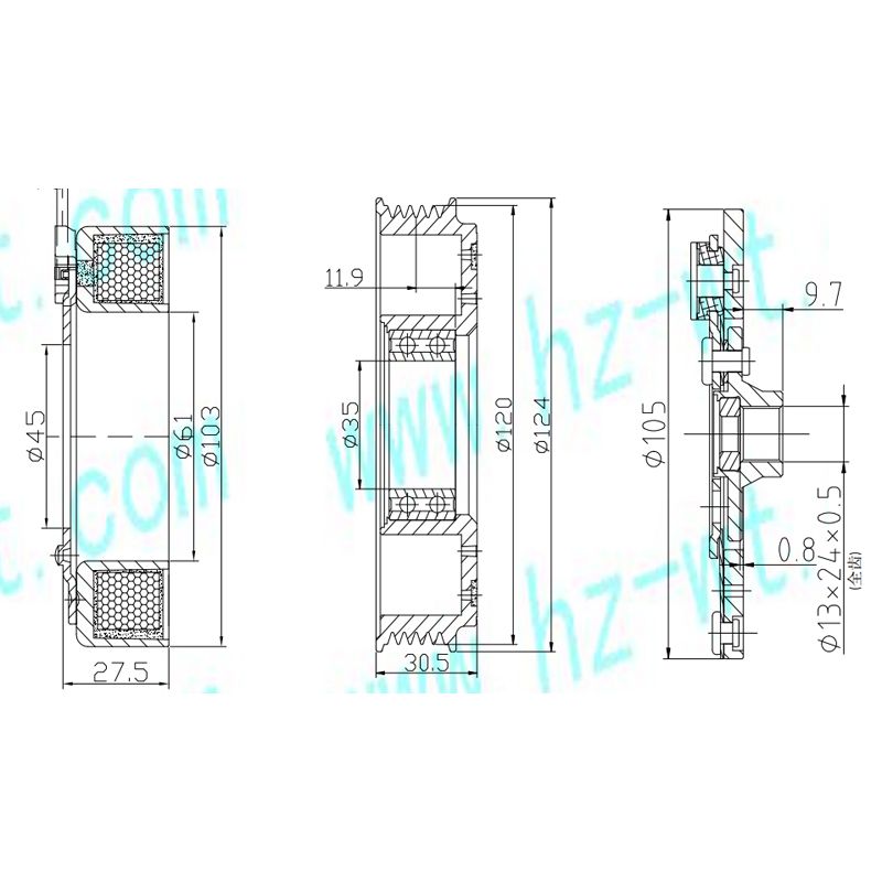 | Hub Axlehole: | 13×24×0.5 |